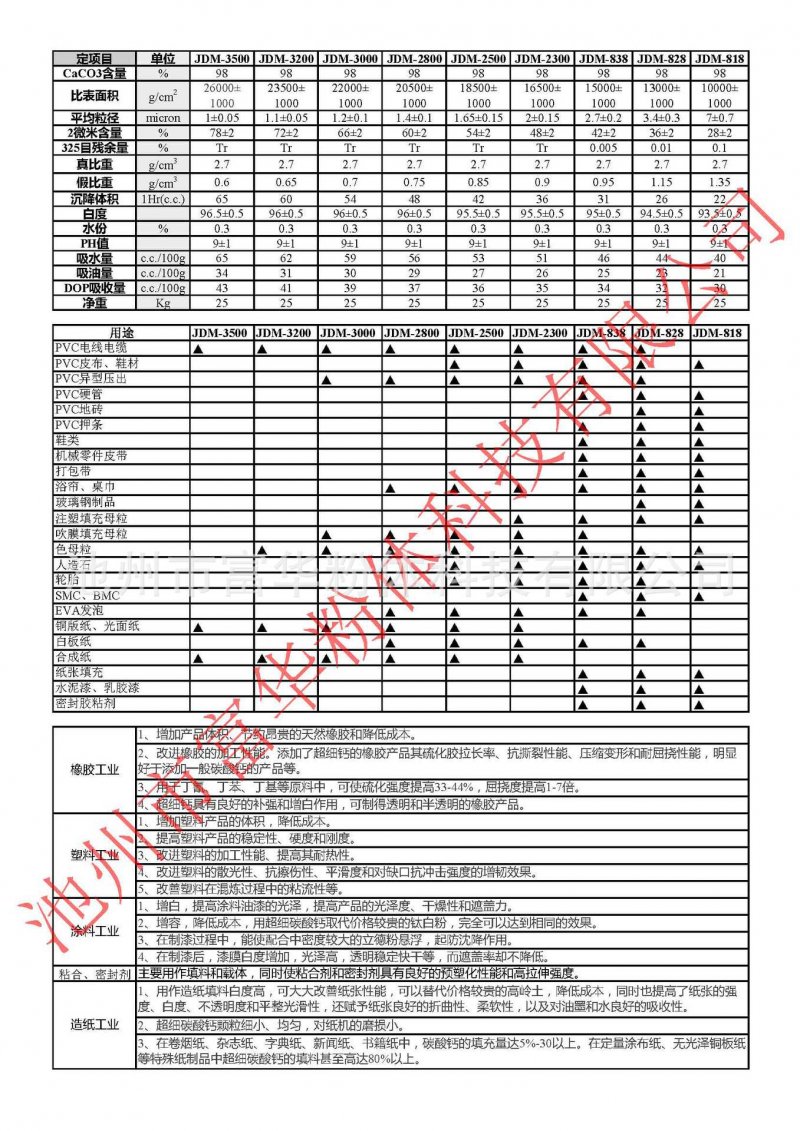 本产品原料采用优质方解石,经水洗、挑选并干燥后,采用立磨、球磨工艺,粉体粒径分布合理,吸油值低,流动性好,在高分子材料中易分散,符合橡塑、涂料等行业使用。